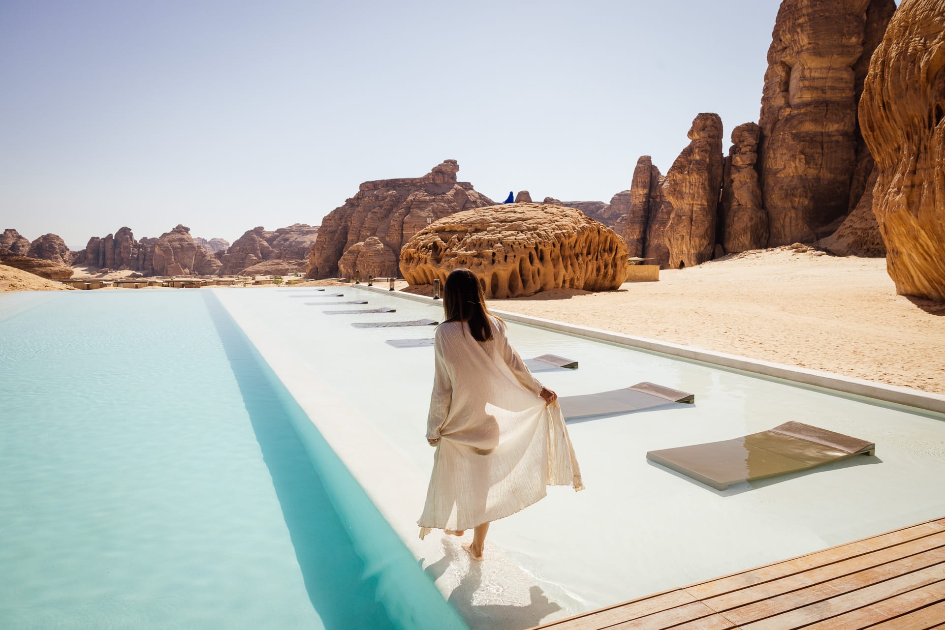 Umgeben von einer surrealen Formation aus Sandsteinfelsen befindet sich das Our Habitas. Die Anlage fügt sich so harmonisch und organisch in die AlUla ein, dass man meinen könnte, sie wäre dort auf natürliche Weise gewachsen. Doch auch, wenn dem nicht so ist: Natur und Nachhaltigkeit, die Geschichte und Zukunft der AlUla stehen im Mittelpunkt an diesem Ort, der eine wahre Bereicherung ist für die Menschen, die ihn besuchen. Und auch für einige Künstler, die sich hier zu spannenden Objekten inspirieren ließen. Kunstvolle Farbtupfer zwischen den exklusiven Villen, die majestätisch auf dem weichen Wüstensand ruhen, bereit, ihrerseits ebenfalls für majestätische Ruhe zu sorgen.